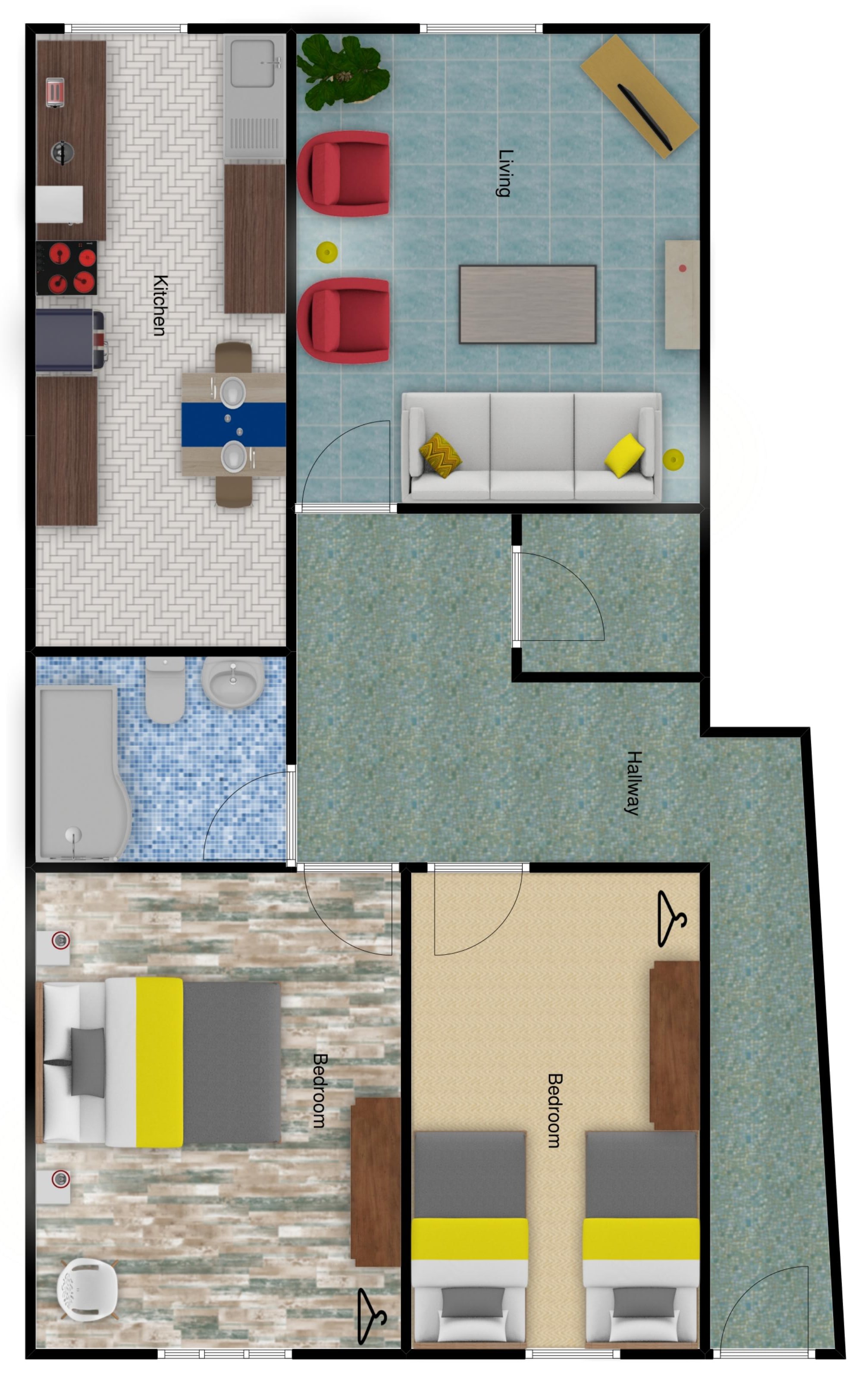 Pier is a 2 bedroom apartment centrally located at the back of our Starfish house building on Silver Street. It sleeps up to 4 people in its 2 bedrooms, bedroom 1 is a double, bedroom 2 is a twin room. Pier also has a separate living area as well as a fully equipped kitchen.